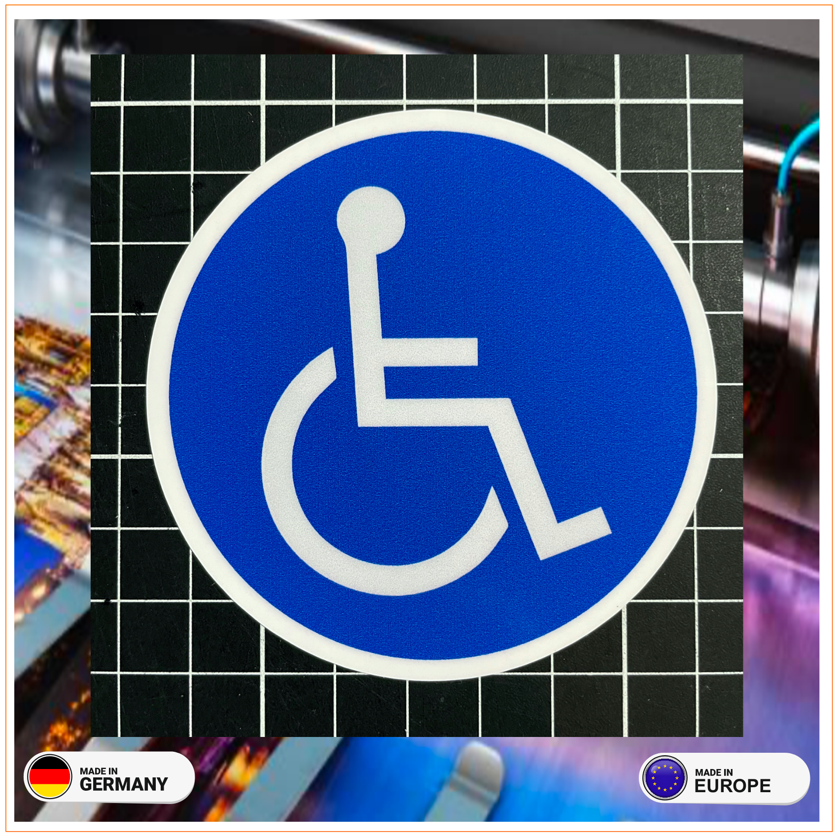 Behinderung Rollstuhl Rundlogo Aufkleber Hinterglasklebend
