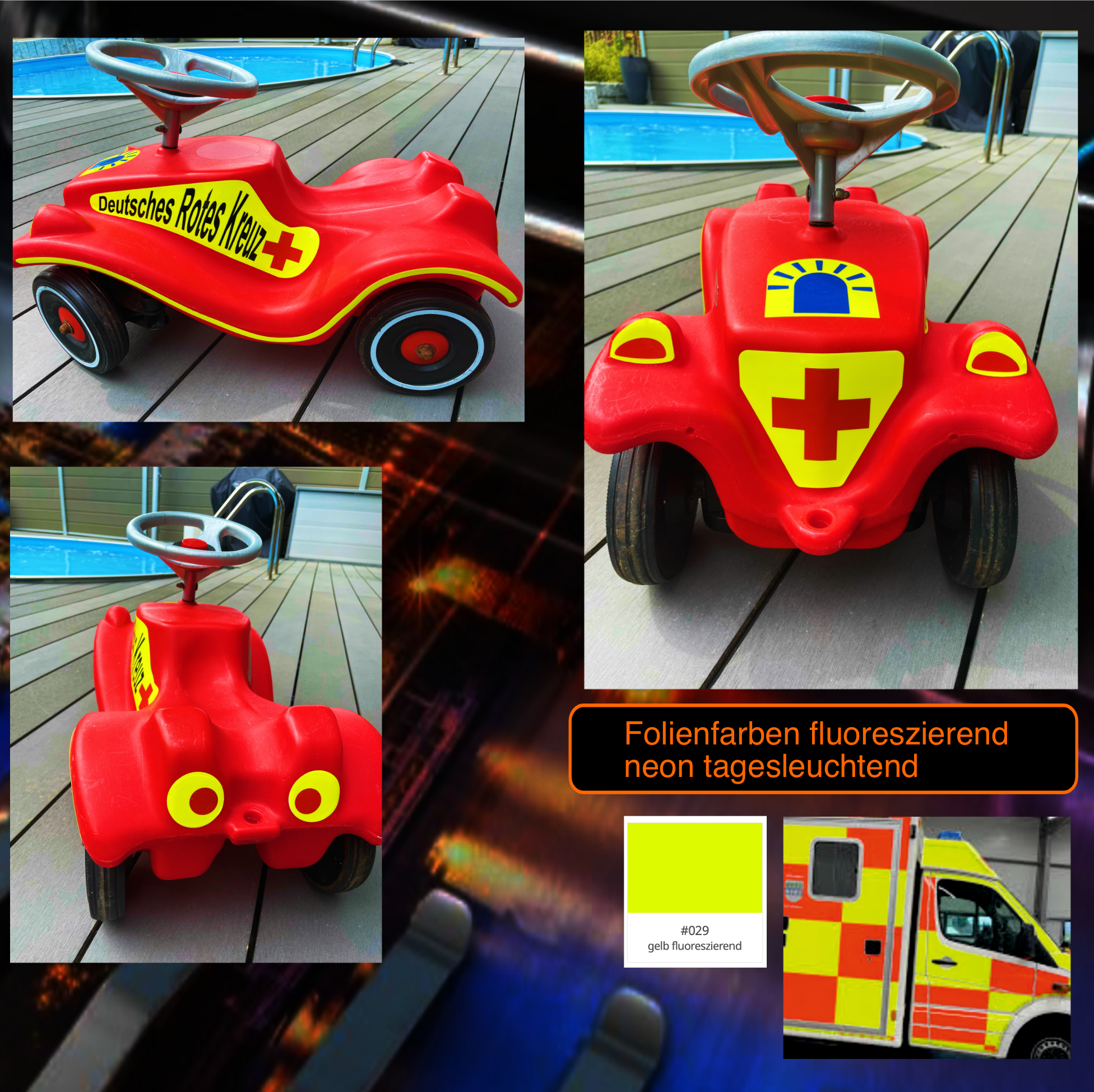 Deutsches Rotes Kreuz Bobby Car Classic, Aufkleber neongelb tagesleuchtend flourezierend
