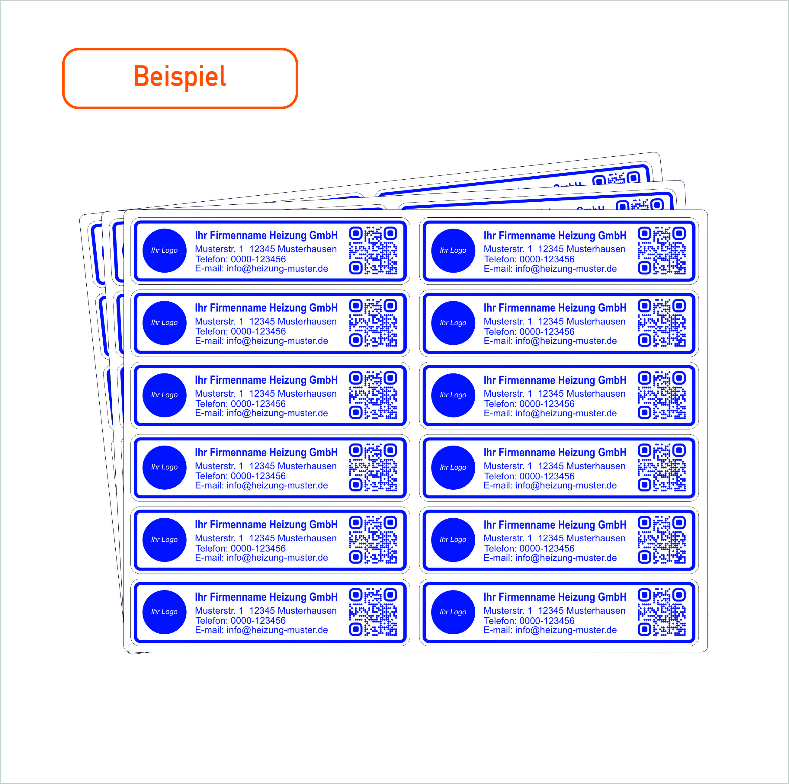 Geeignet für z.B. Werkzeuge, Heizungen und Kleingeräte, mit Ihrem eigenen Logo, Firmenadresse und Kontaktdaten.