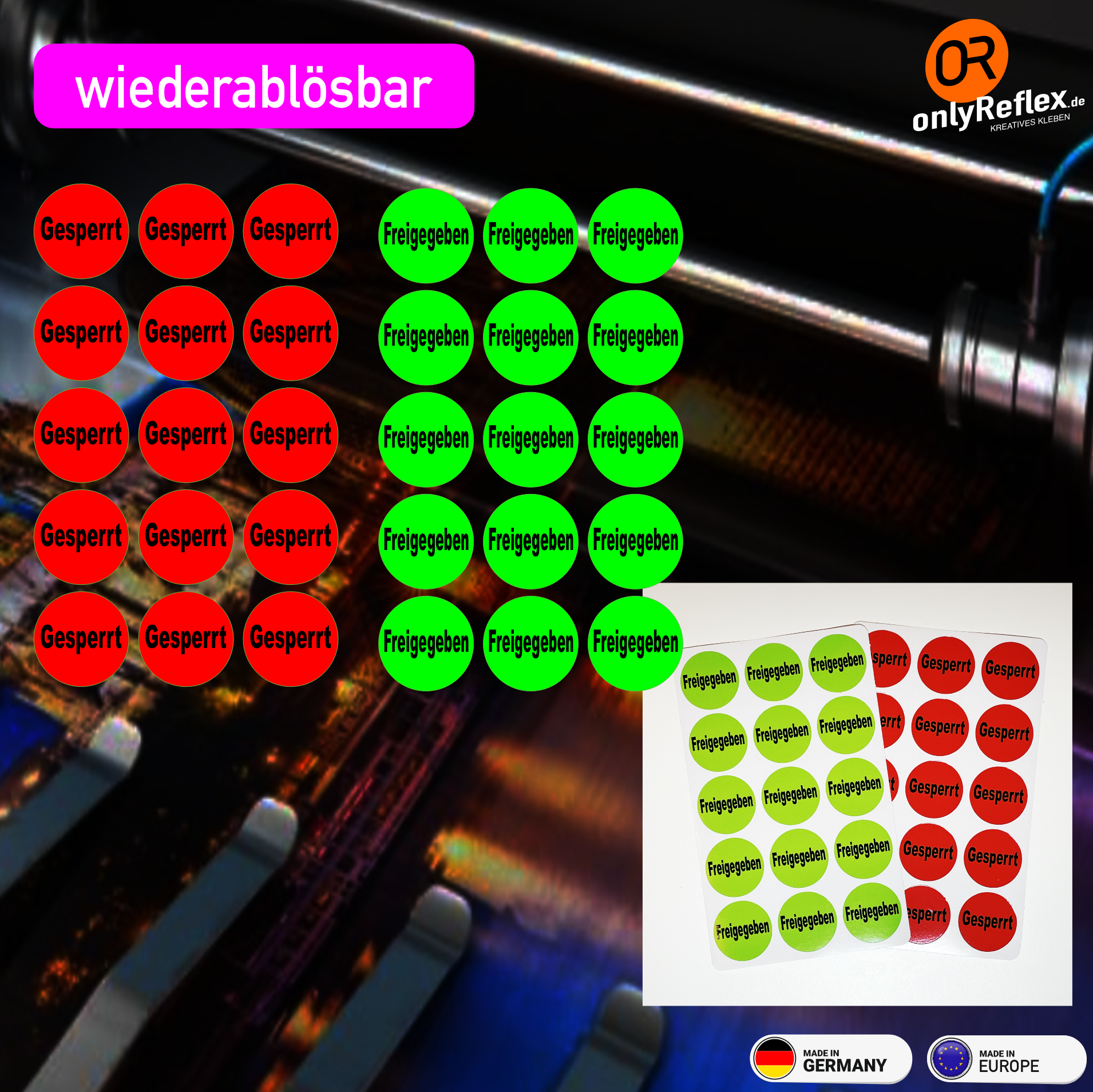 Gesperrt / Freigegeben Etiketten Rund - Folie wiederablösbar