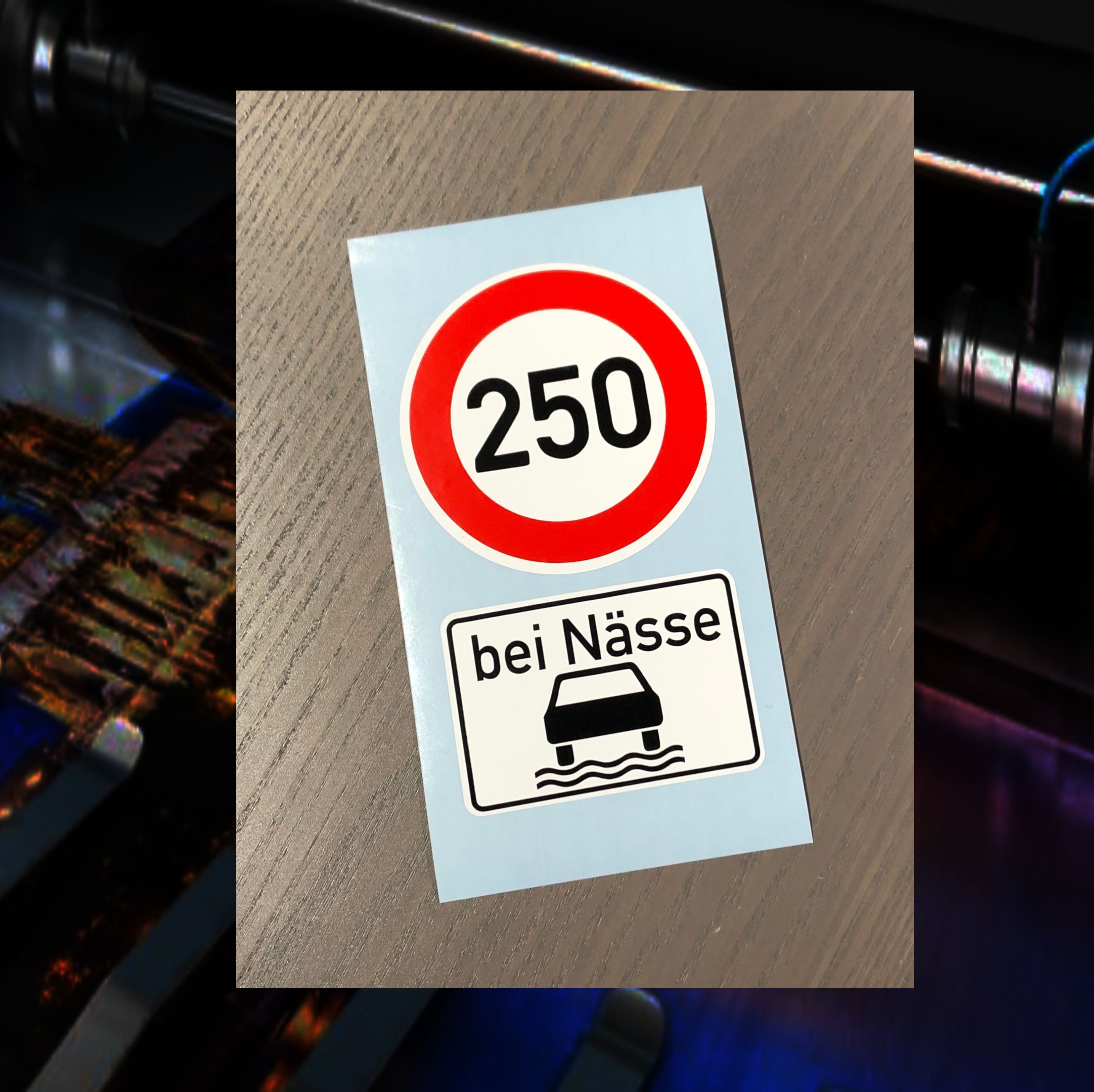 250 bei Nässe, Aufkleber 10x6 cm
