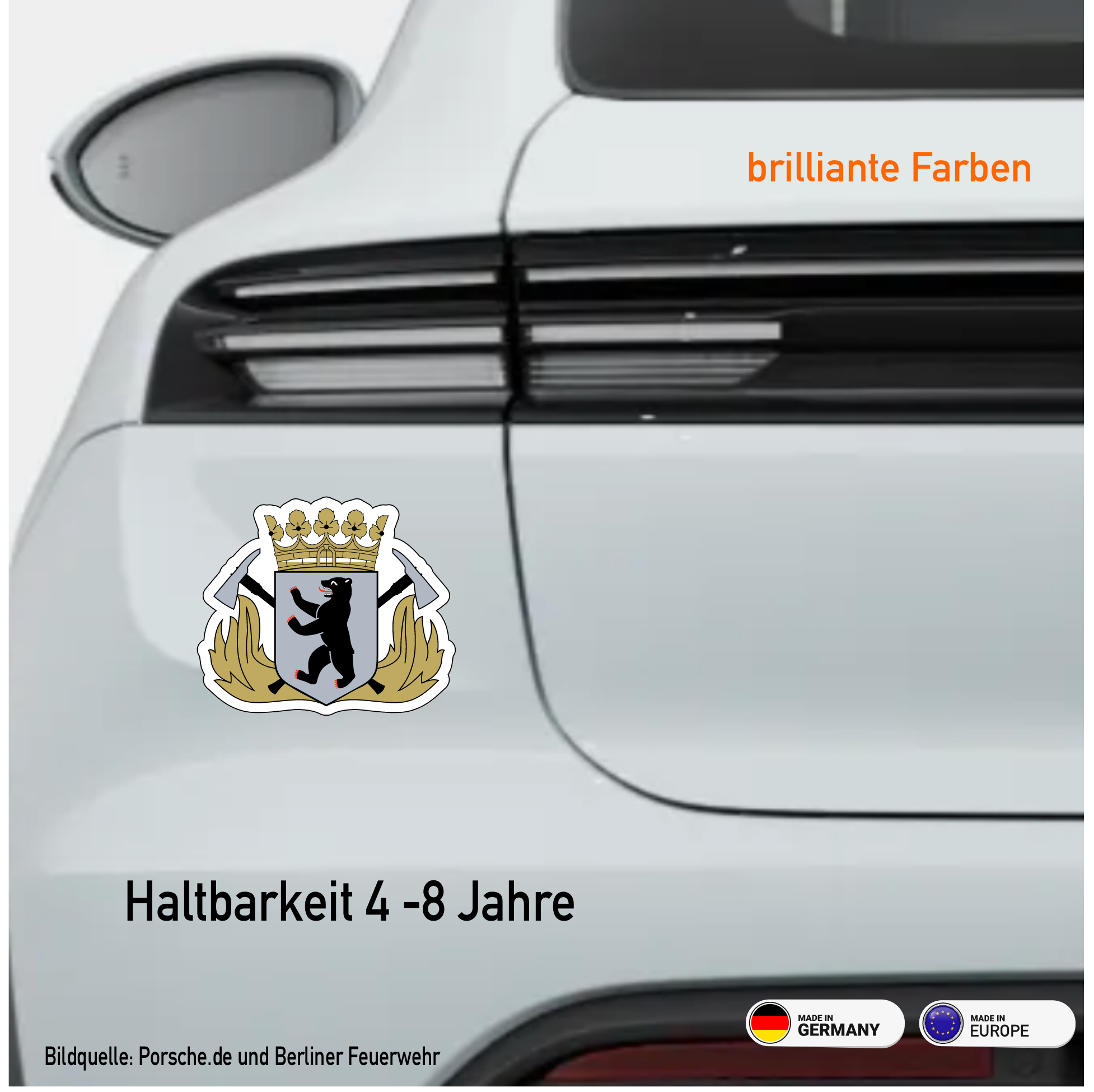 Berliner Feuerwehr Wappen - Aufkleber mit Hintergrund, 8x6 cm