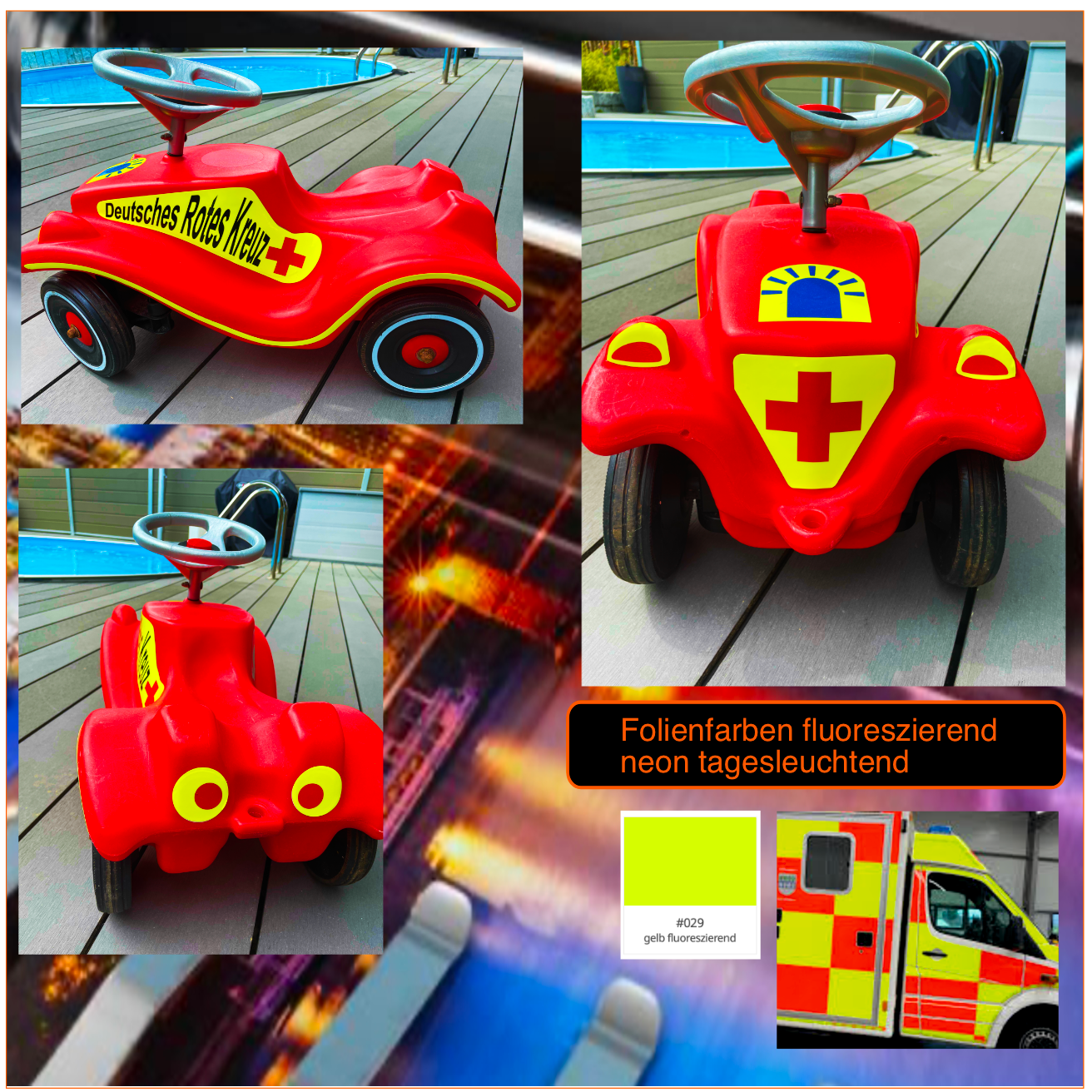 Deutsches Rotes Kreuz Bobby Car Classic, Aufkleber neongelb tagesleuchtend flourezierend