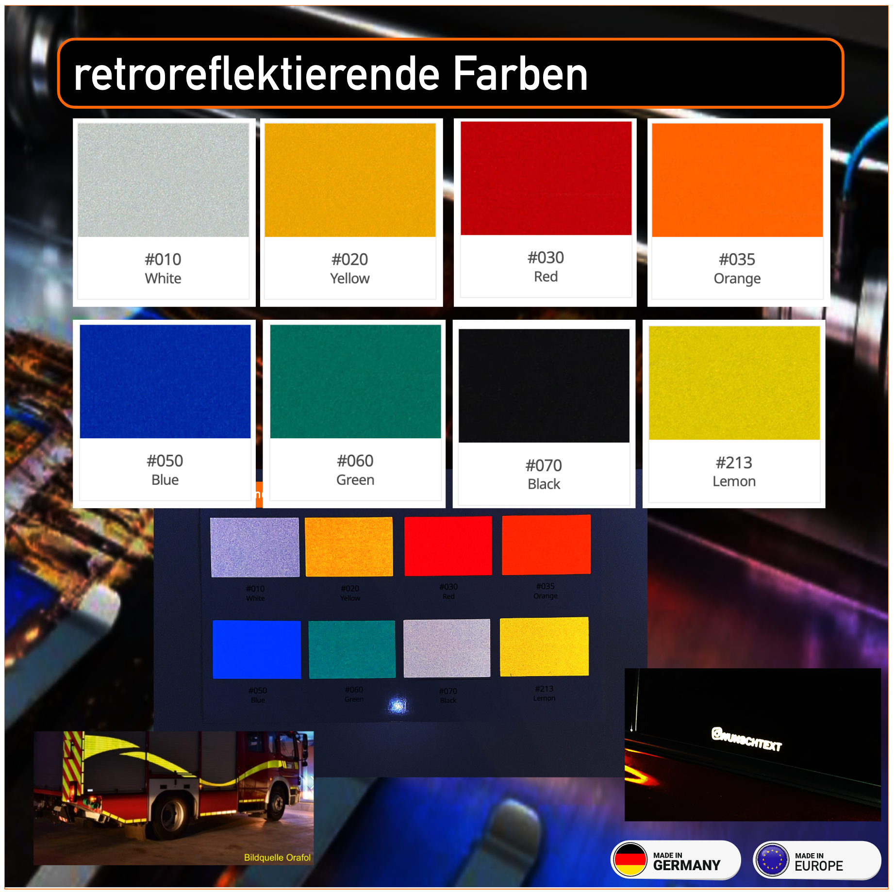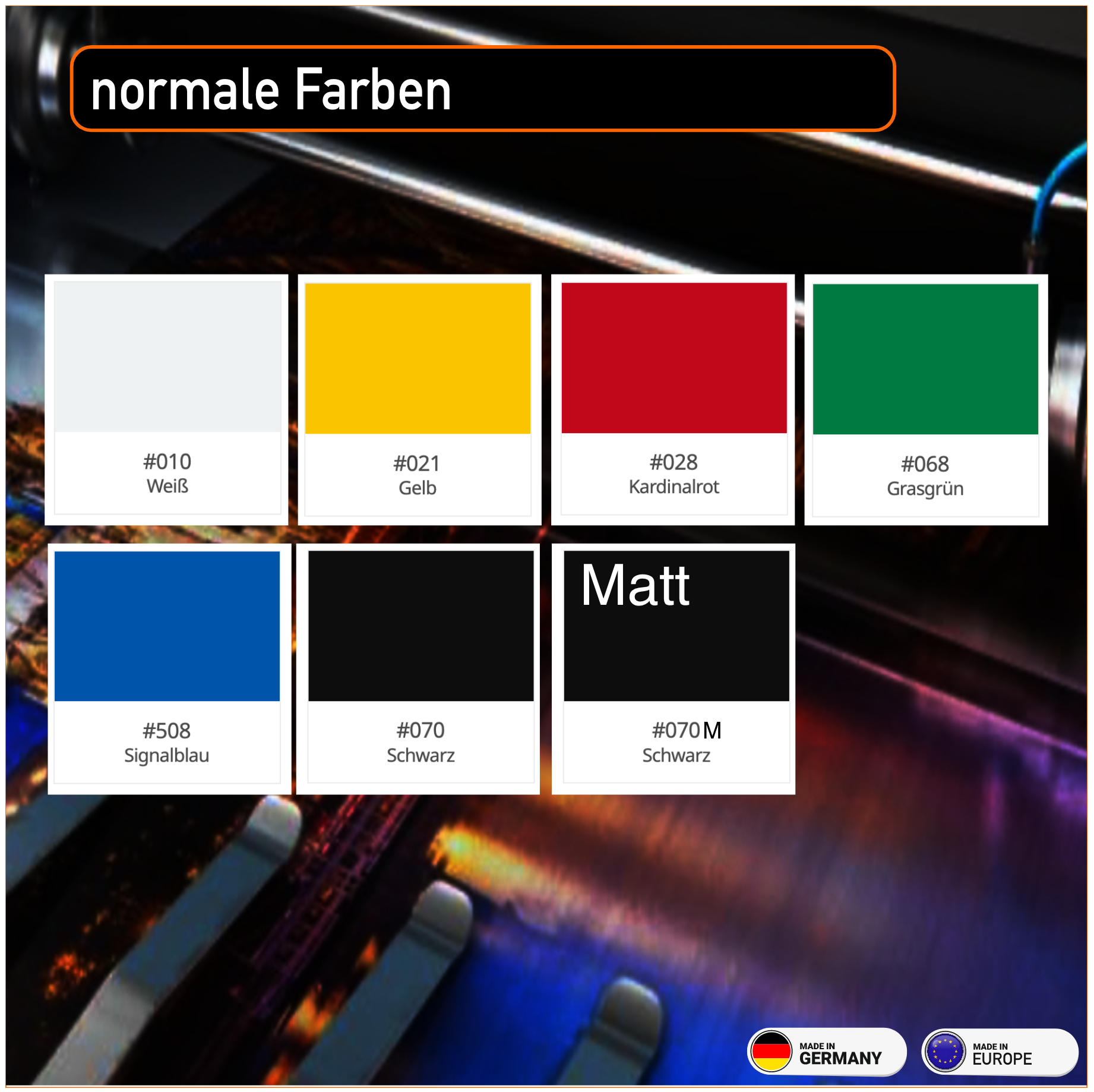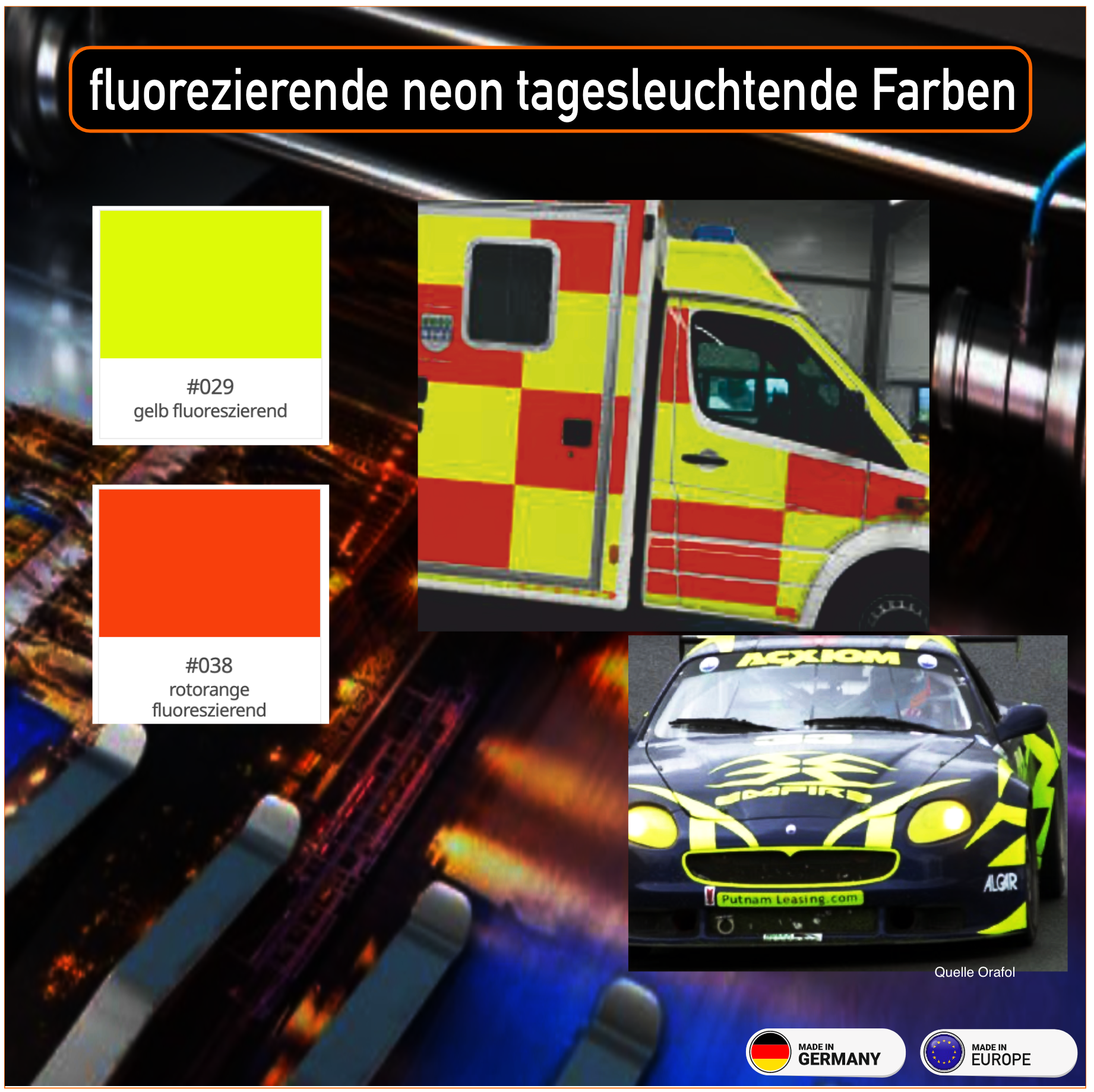 - fluoreszierende Folien: neongelber oder neonorangene Farben