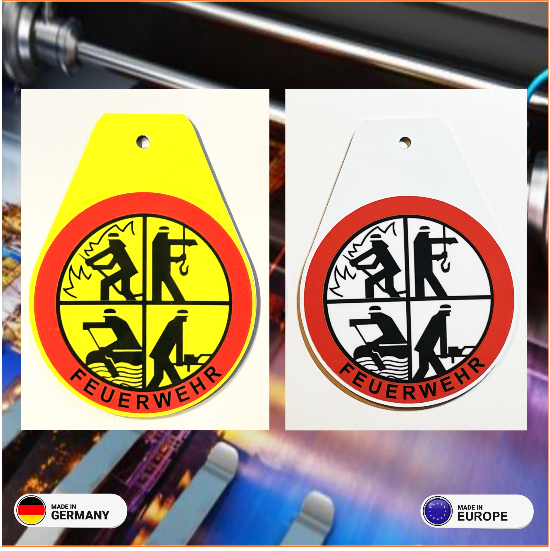 Feuerwehr Schild „Tropfenform“ mit Saugnapf