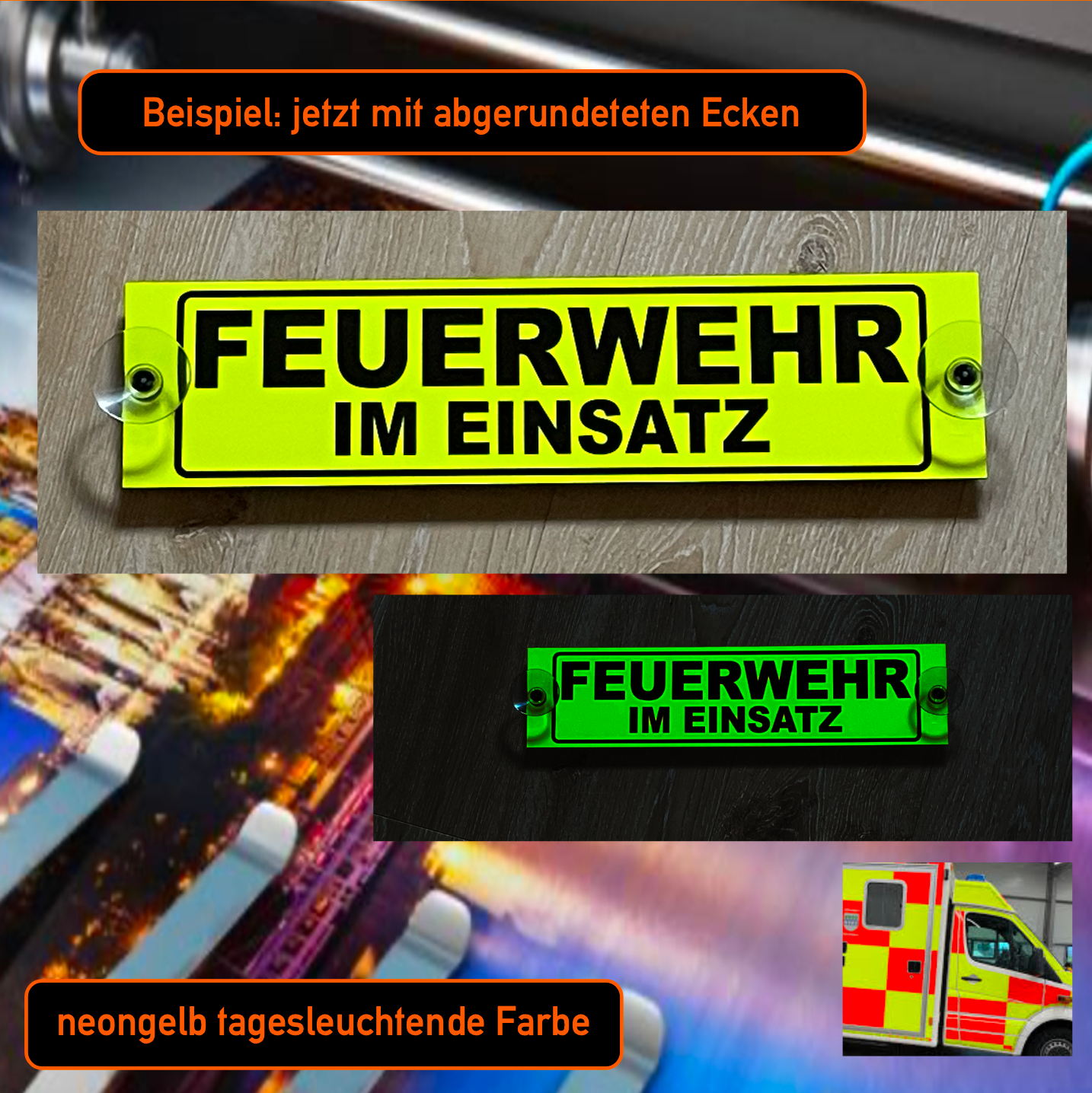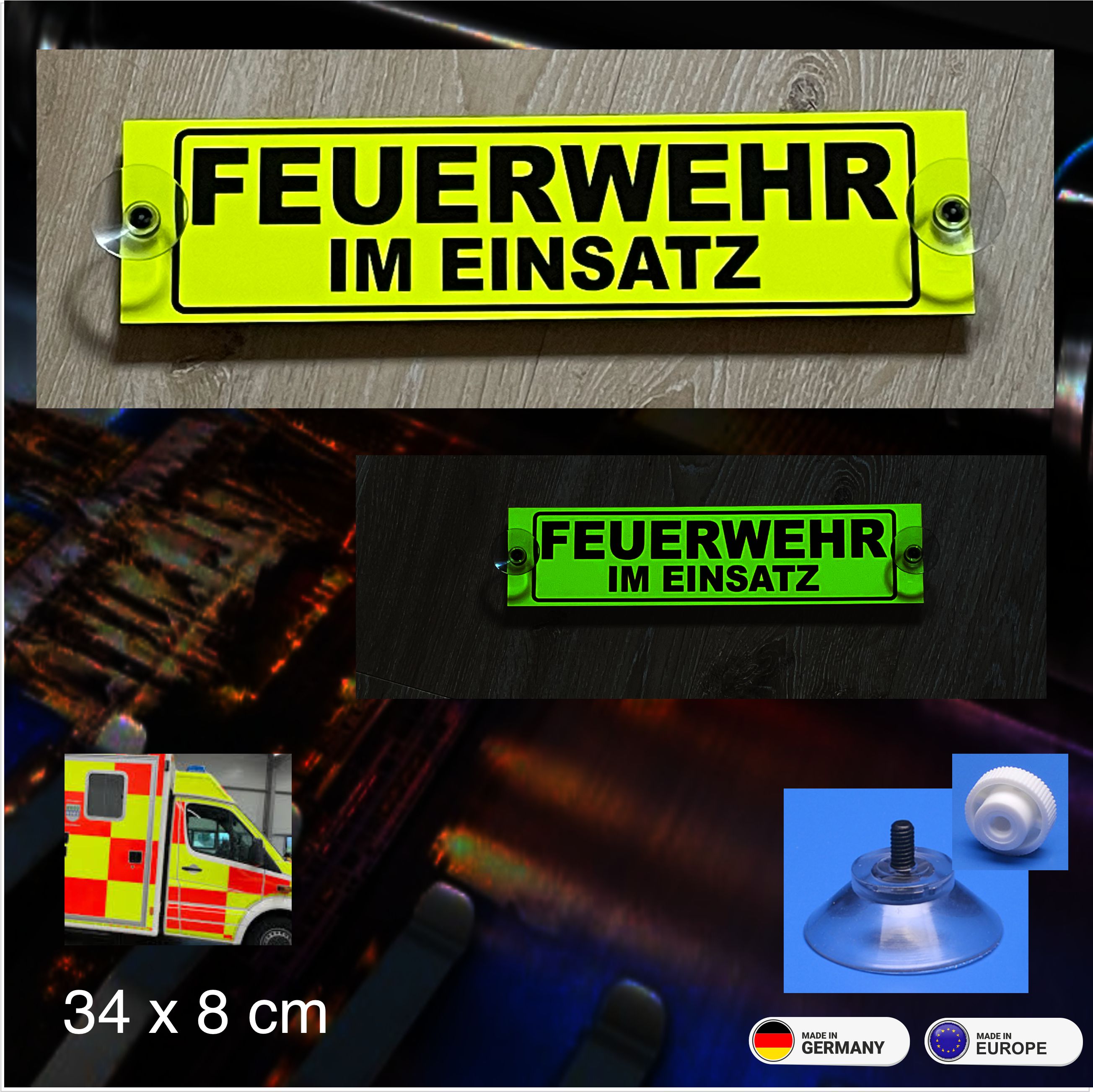 Feuerwehr im Einsatz, Schild mit Saugnapf 34x8 cm