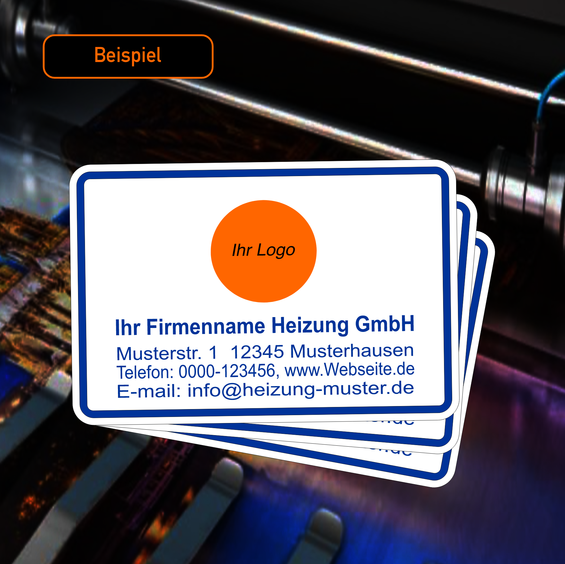 Geeignet für z.B. Werkzeuge, Heizungen und Kleingeräte, mit Ihrem eigenen Logo, Firmenadresse und Kontaktdaten.