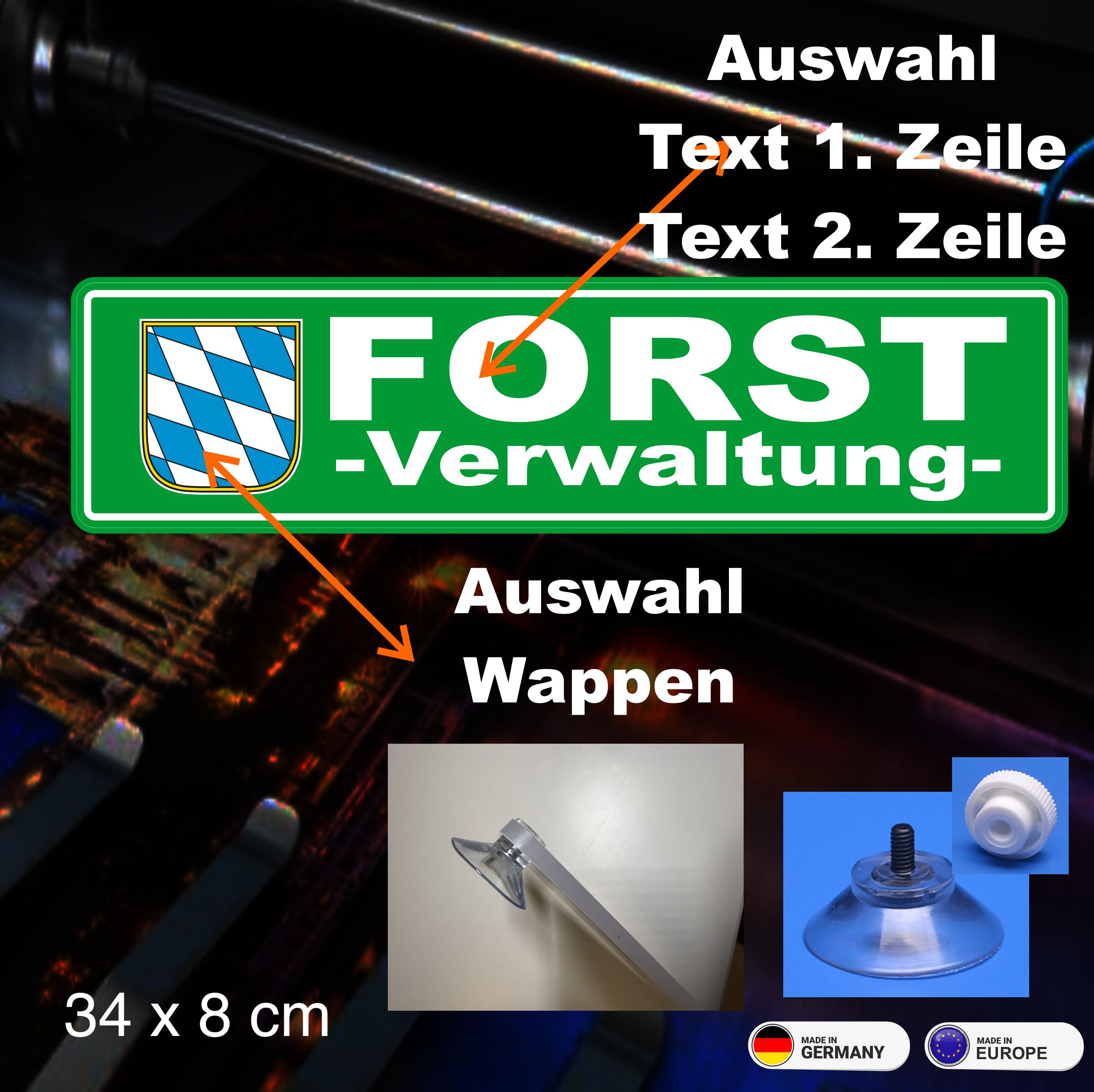 Forst Schild mit Wunschwappen - 34x8 cm mit Saugnapf