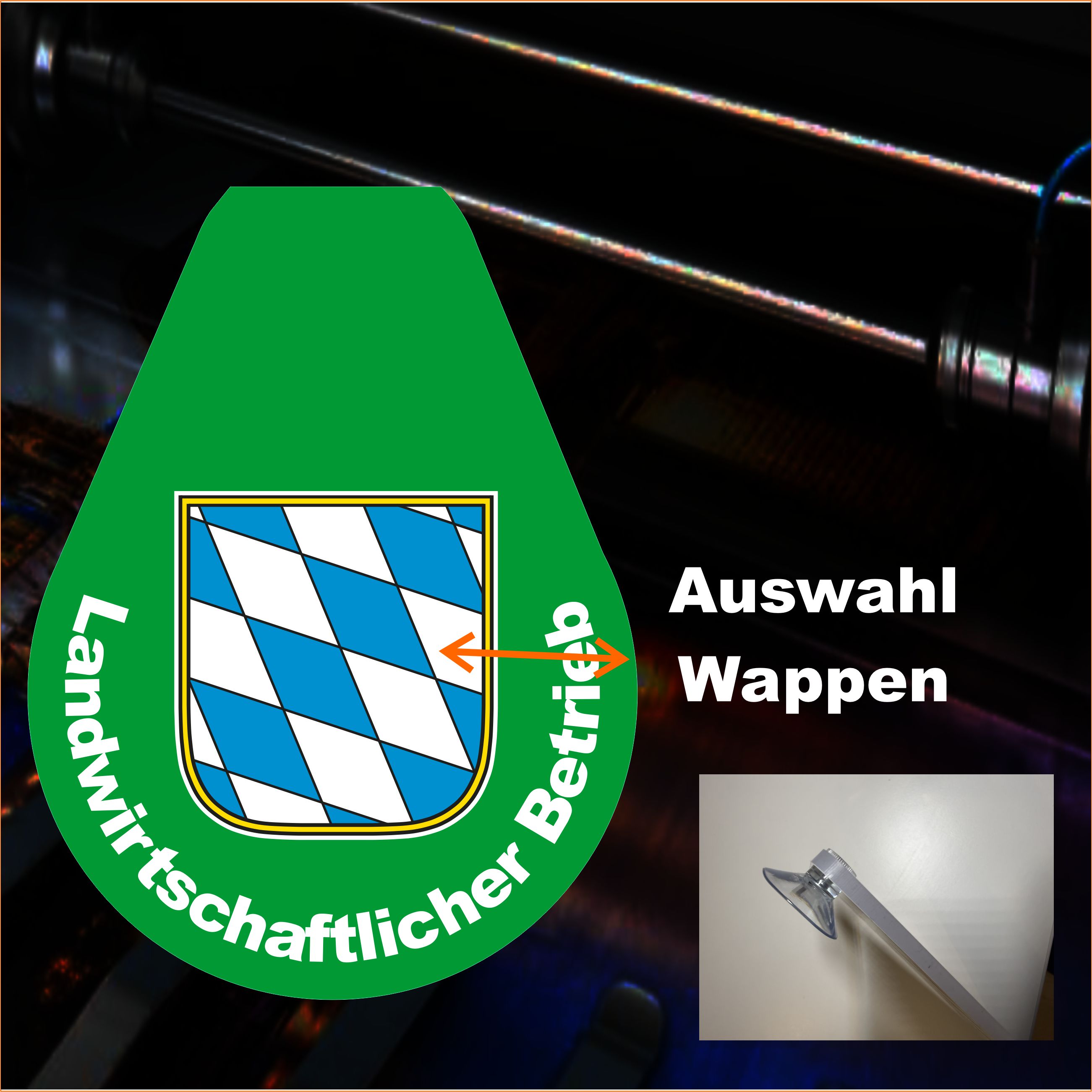 Landwirtschaftlicher Betrieb Schild mit Wunschwappen - 13x10 cm mit Saugnapf