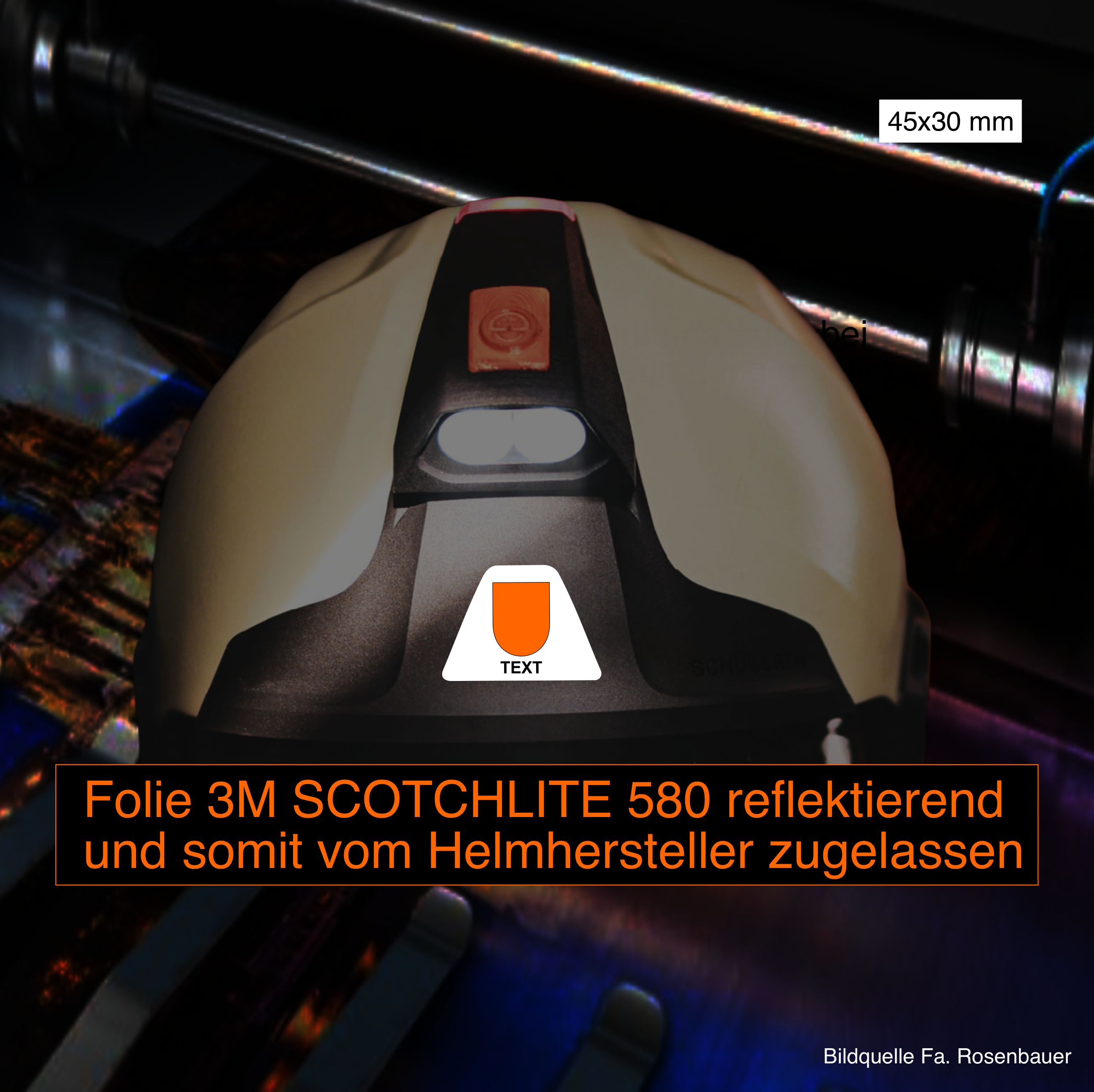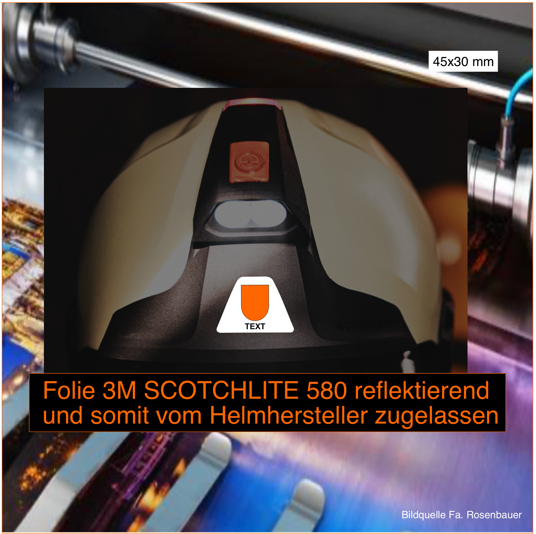 Die Größe und Farbe wird durch die Fa. Schuberth vorgegeben. Wir verwenden die Folien 3 M Scotchlite Reflektierende Folie Serie 580 E und entsprechen somit die Bestimmen und Vorgaben aller Helmhersteller.