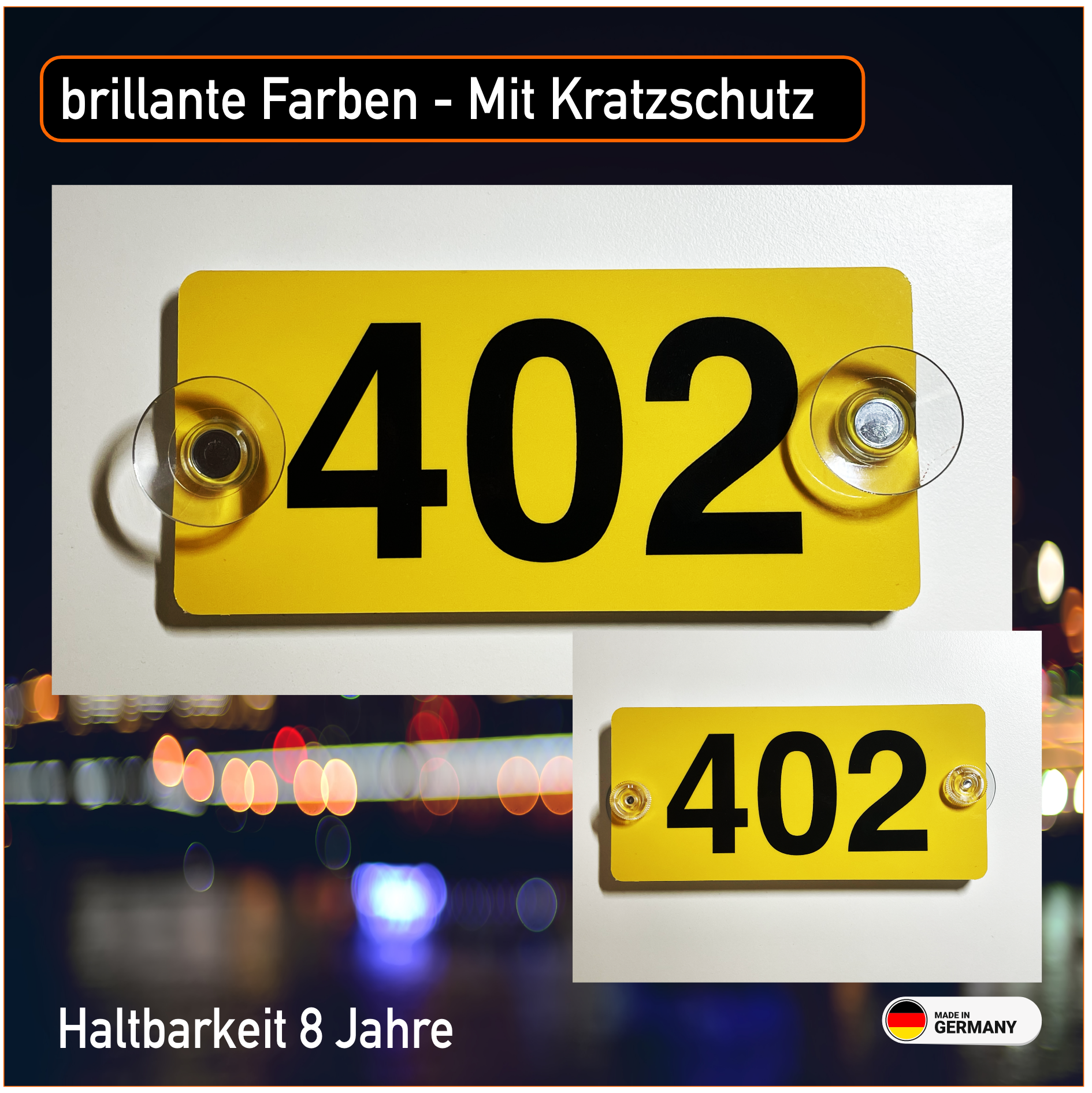Schild mit Saugnapf 150x70x2 mm – mit ihren Wunschtext/Zahl gemäß BO Kraft